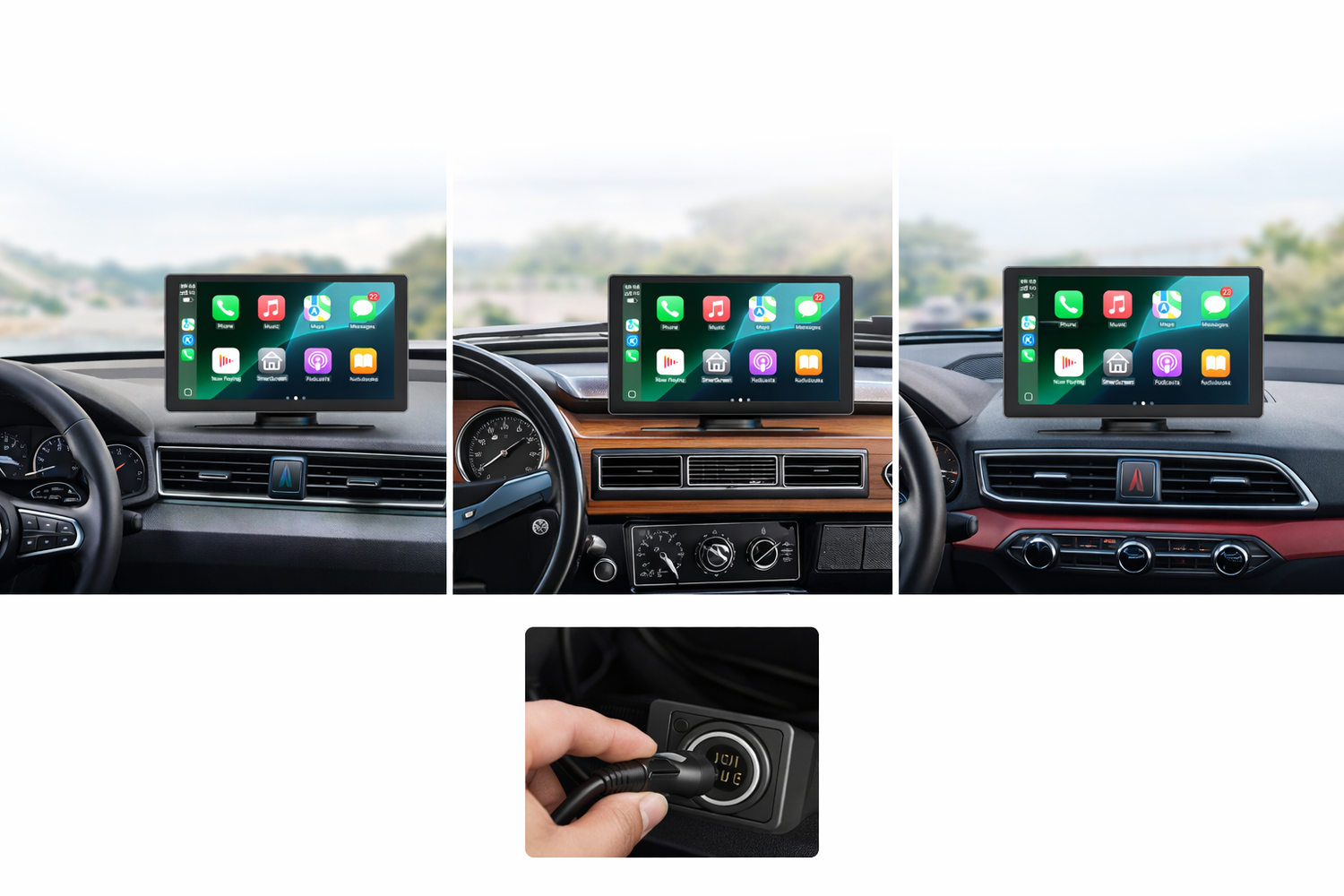Oui. L’écran CarPlay est compatible avec la majorité des véhicules (voitures, SUV, camions, camping-cars, utilitaires), même les anciens modèles sans écran d’origine. Il fonctionne via allume-cigare 12V–32V et ne nécessite pas de retirer l’autoradio existant.